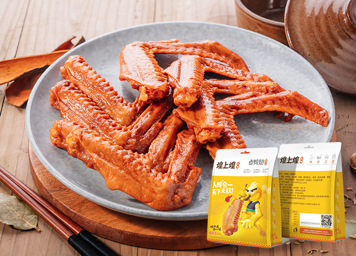 精選規(guī)格統(tǒng)一的鴨鎖骨,濃湯鹵制,使用多種調(diào)味料、紅油拌制調(diào)理,...